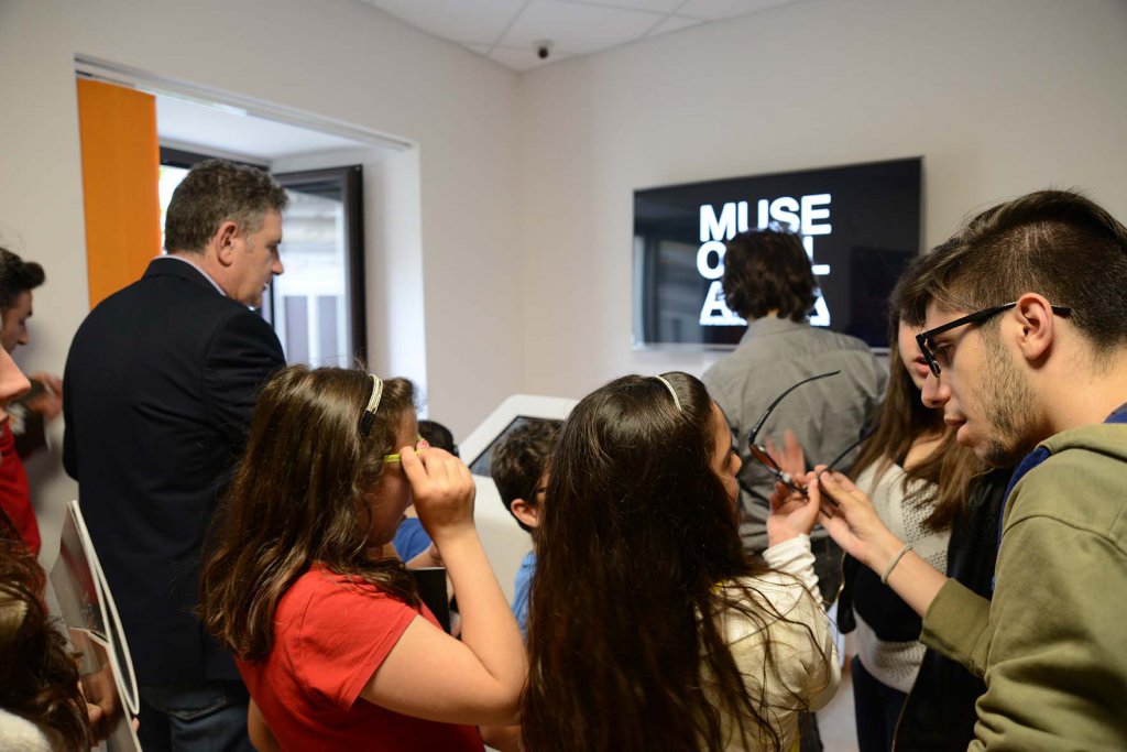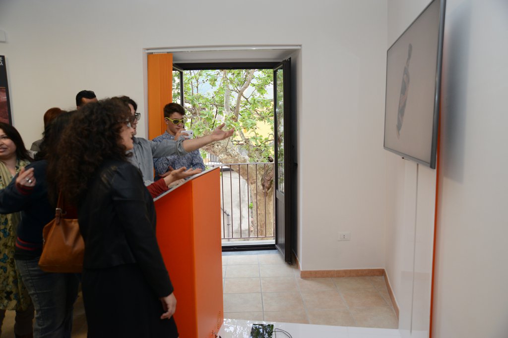 Both the objects and the surrounding spaces have been made available in stereoscopy on the Totem Mneme and on five 55” TV screens, which have been integrated with an App and a number of QR codes, placed on the showcases as well.